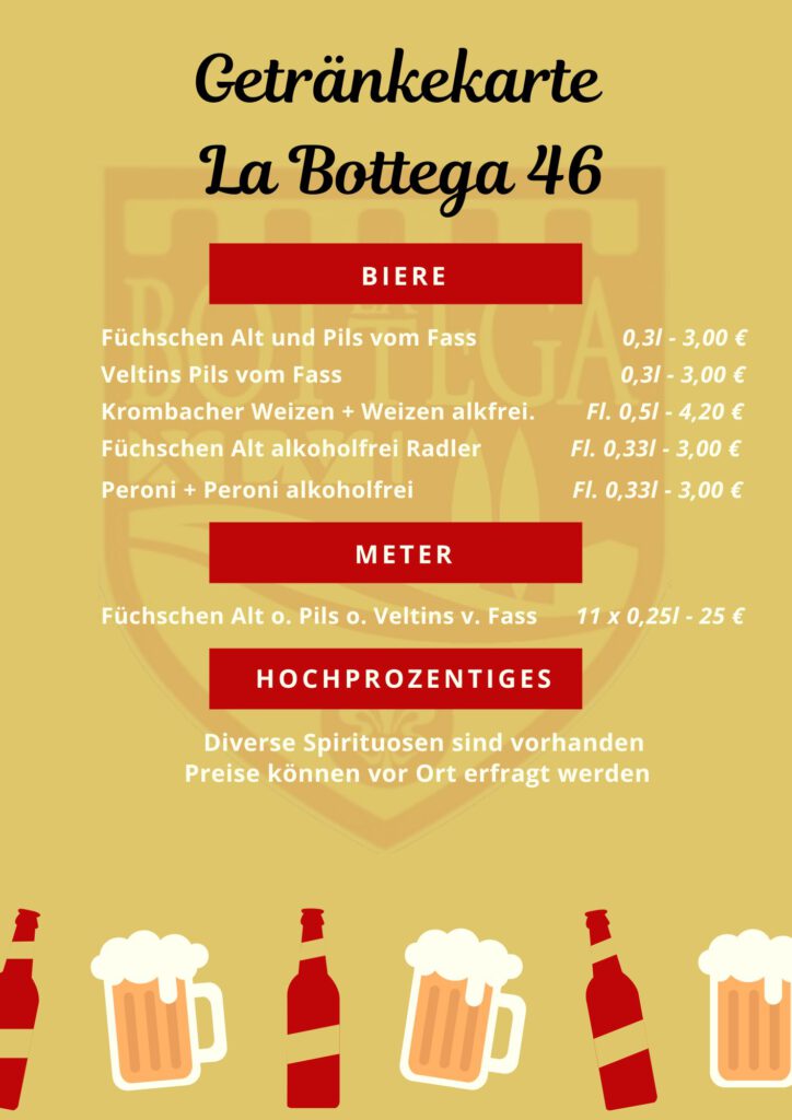 Im La Bottega 46 gibt es leckeres Füchschen, sowohl das Altbier wie auch das Pils der Düsseldorfer Hausbrauerei.